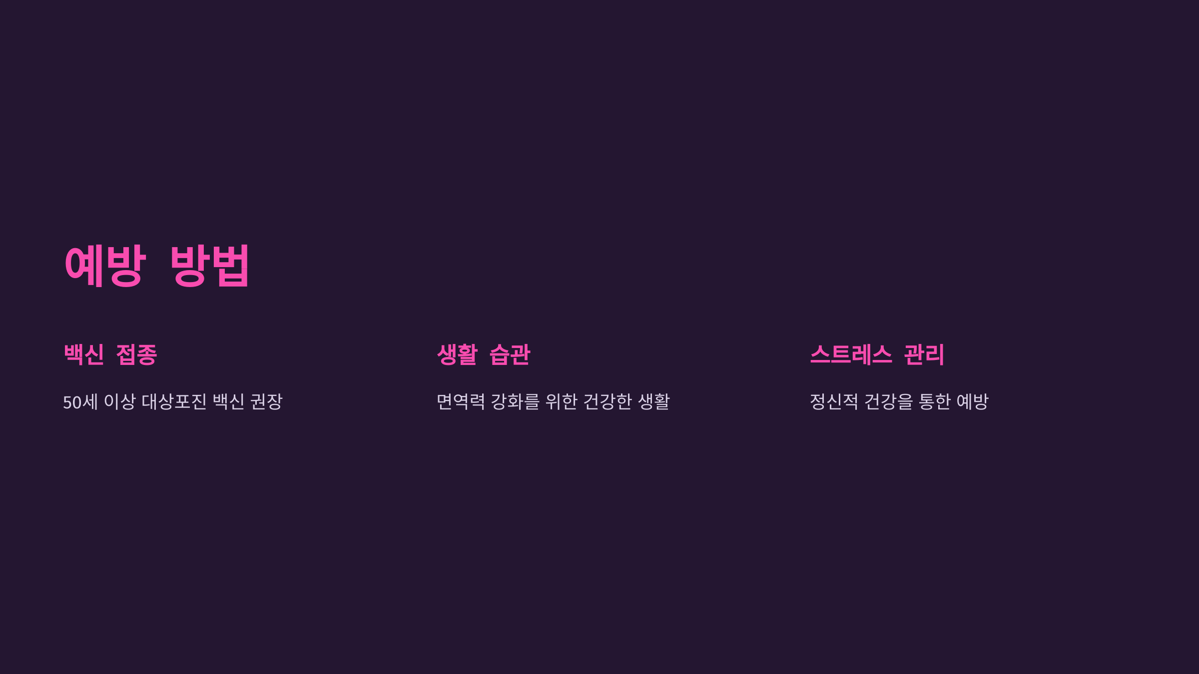 대상포진은 면역력이 약해지기 쉬운 중장년층에게 특히 위험할 수 있는 질환입니다. 초기 증상을 빠르게 인지하고 적절한 치료를 받으면 통증을 줄이고 합병증을 예방할 수 있습니다. 더 나아가, 백신 접종과 생활 습관 개선을 통해 예방할 수 있다는 점에서 미리 관리하는 것이 중요합니다.