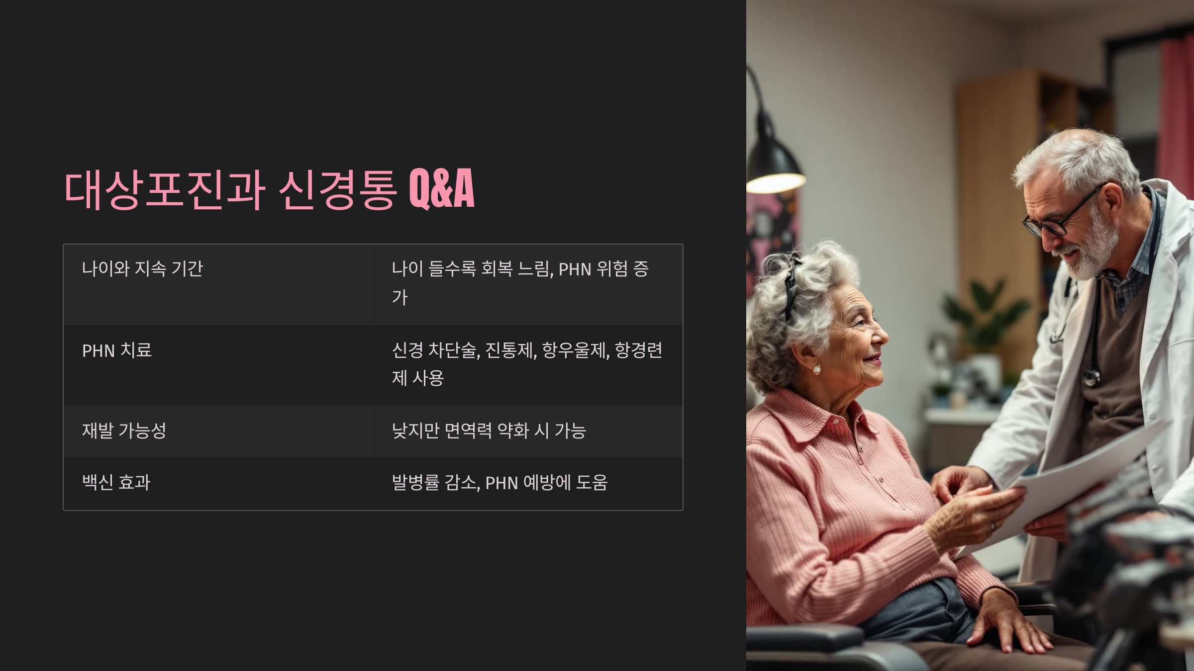 Q1: 대상포진은 나이가 들수록 더 오래 지속되나요?