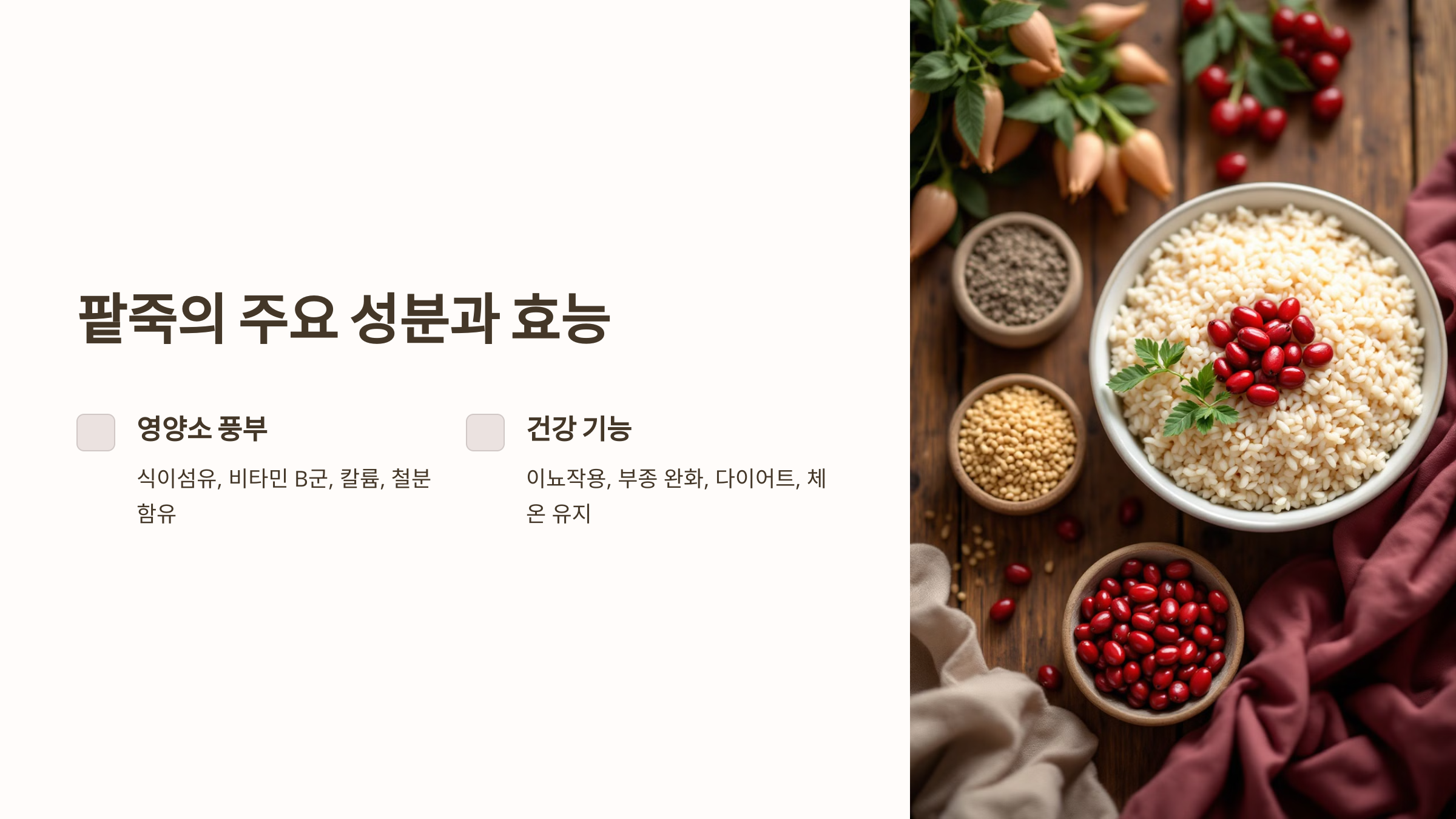 팥죽의 효능과 칼로리: 겨울철 건강 간식으로 완벽한 이유