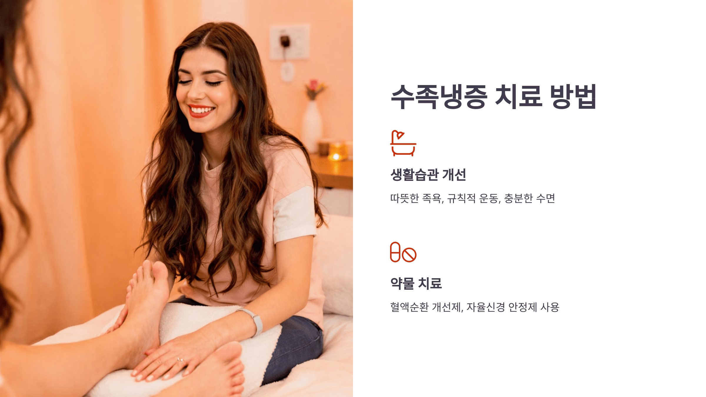 - 생활습관 개선: 따뜻한 물로 족욕하기, 규칙적인 운동, 충분한 수면, 스트레스 관리 등