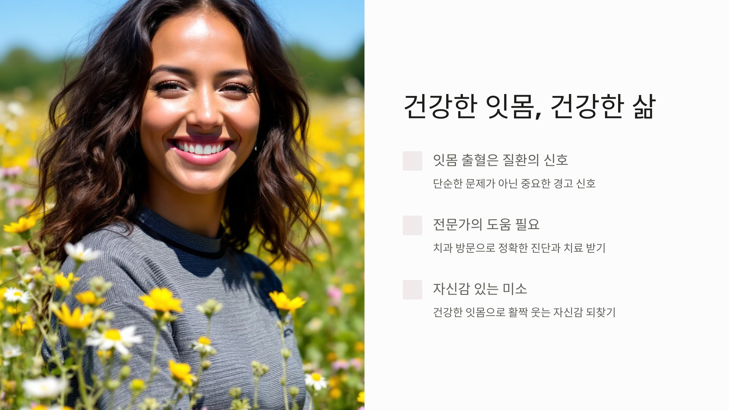 더 이상 혼자 고민하지 마세요. 지금 바로 잇몸 건강을 되찾고, 활짝 웃을 수 있는 자신감을 되찾으세요!
