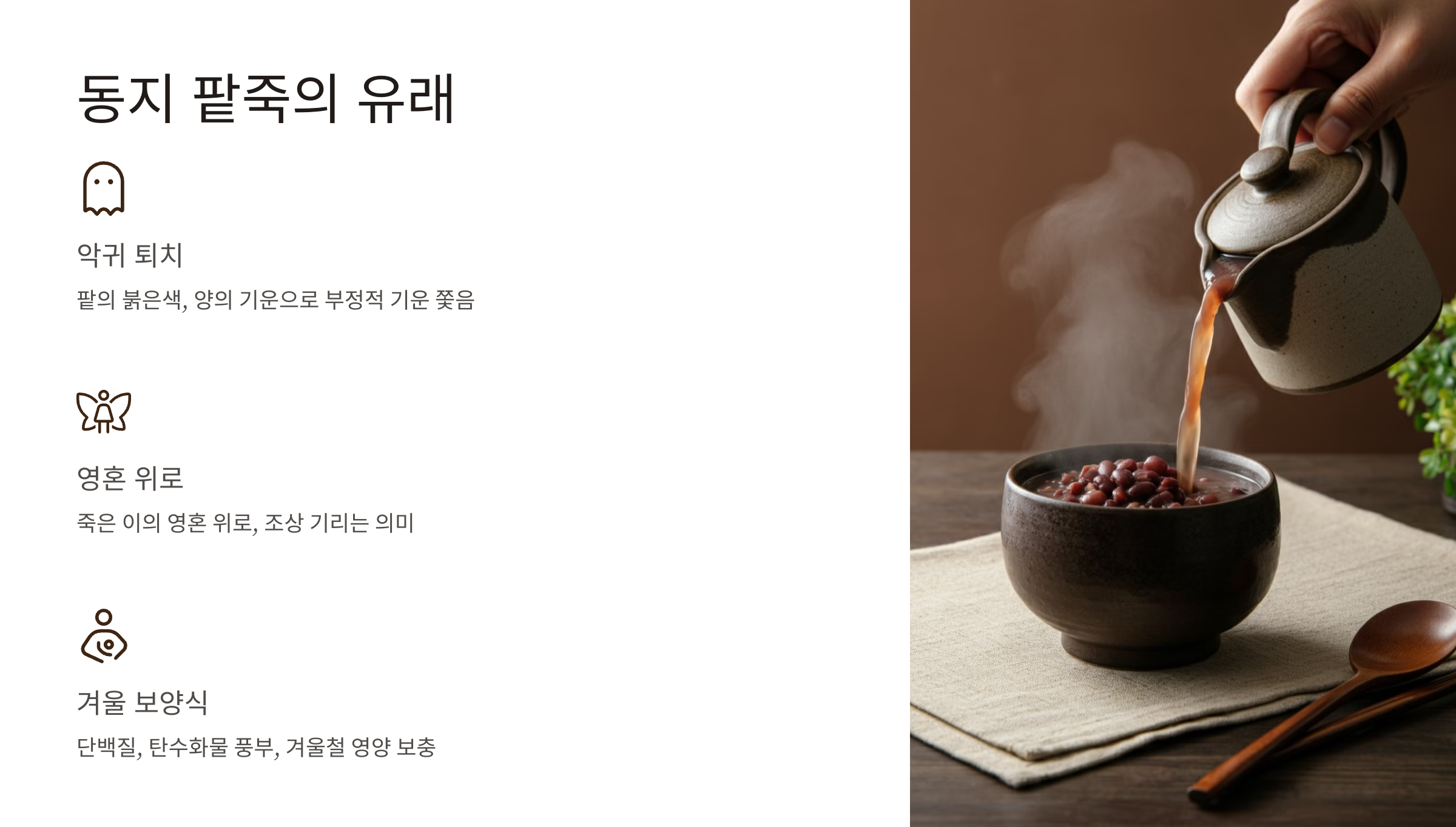 동지 팥죽에는 단순한 음식 이상의 깊은 전통적 의미가 담겨 있습니다.