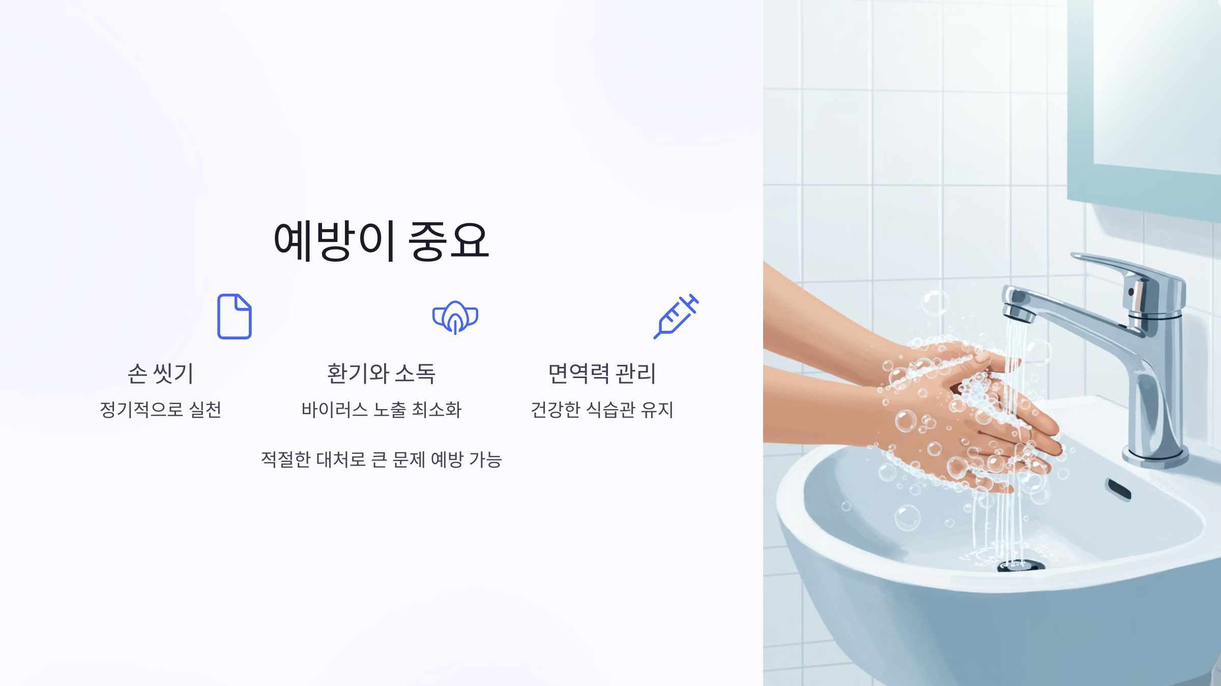 예방의 핵심은? 손 씻기와 개인위생 관리가 가장 효과적인 방법입니다.